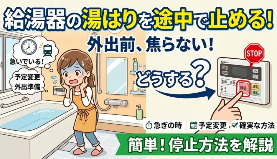 外出準備で急いでいるとき、予定変更時、あるいは湯量調整したいとき—給湯器の自動湯はりを途中で止めたい場面は多くあります。