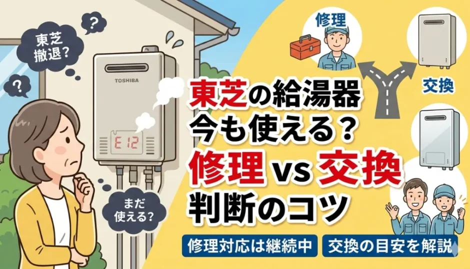 この記事では、東芝の給湯器の修理対応の実態と、修理か交換かを判断する具体的な目安を解説します。