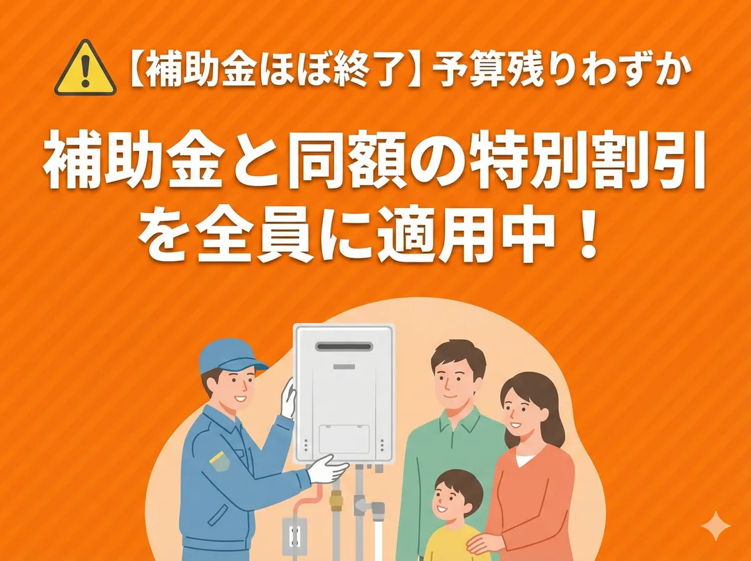 市・区・県独自の補助はありませんが、国制度「給湯省エネ2025」で最大17万円、当社キャンペーンで 商品券1万円、合計18万円の負担軽減が可能です。
